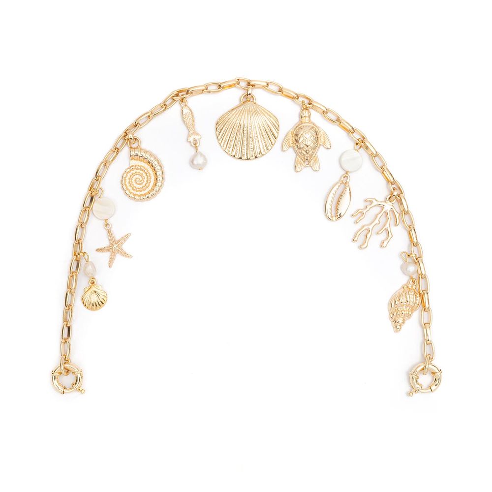 O Bag Charm Colar Sea Elements é o detalhe que transforma a bolsa em um ponto de estilo imediato. Confeccionado em corrente metálica, o acessório traz pingentes com temática marítima e fecho boia, reforçando o espírito fresh e sofisticado da coleção.