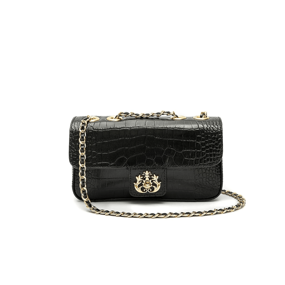 Bolsa Anne Em Couro NEW CROCO PRETO OURO - NEW CROCO PRETO / OURO
