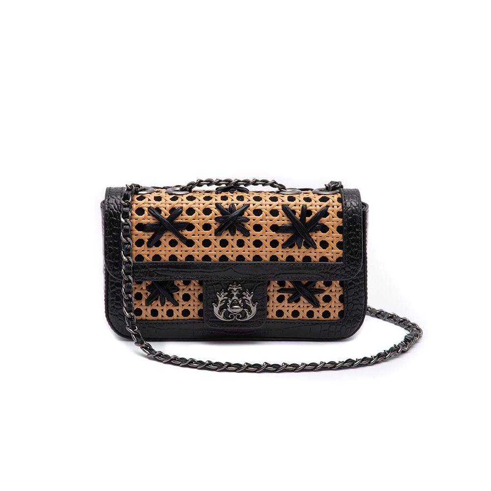 A Bolsa Anne em Palha Indiana Estelar une a elegância urbana ao charme dos materiais naturais em uma proposta sofisticada e surpreendente. Seu shape estruturado é confeccionado em couro croco com aplicação central de palha sextavada, enriquecida por bordados em lamê ou ráfia que evocam o brilho sutil de um céu estrelado.