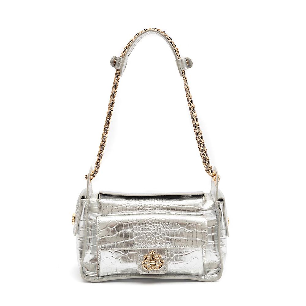 Seu shape destaque com os bolsos utilitários laterais, que adicionam funcionalidade e estilo. O fechamento superior com sobreposição e ímã garante praticidade no uso, enquanto a alça dupla em corrente com couro entrelaçado oferece versatilidade e conforto, com ombreira removível em couro para um ajuste ainda mais sofisticado.
