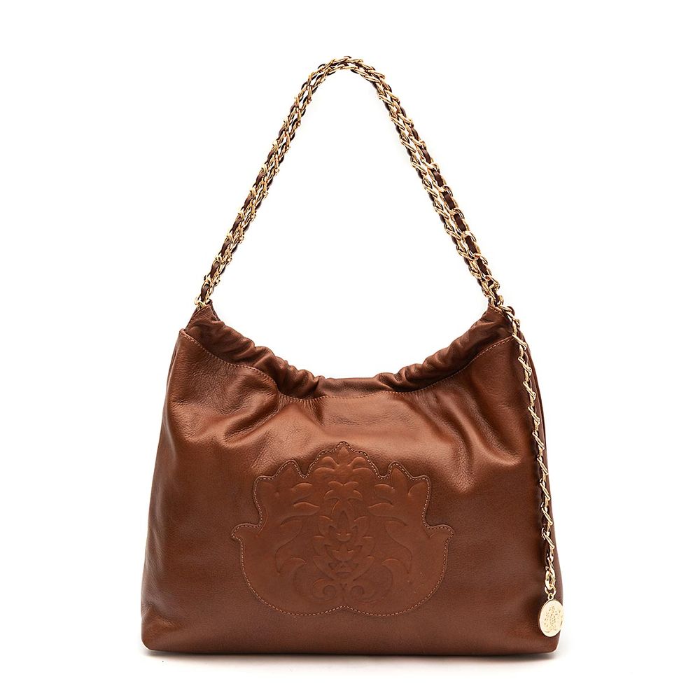 O couro estonado adiciona o toque ideal para compor looks casuais, acrescentando personalidade e sofisticação ao look. Possui alça em corrente de metal com tiras de couro natural cruzadas e um encantador detalhe da medalha com a logomarca. Com um amplo espaço interno, conta também com bolso interno fechado por ímã. A bolsa ideal para transportar os itens essenciais do dia a dia com elegância.