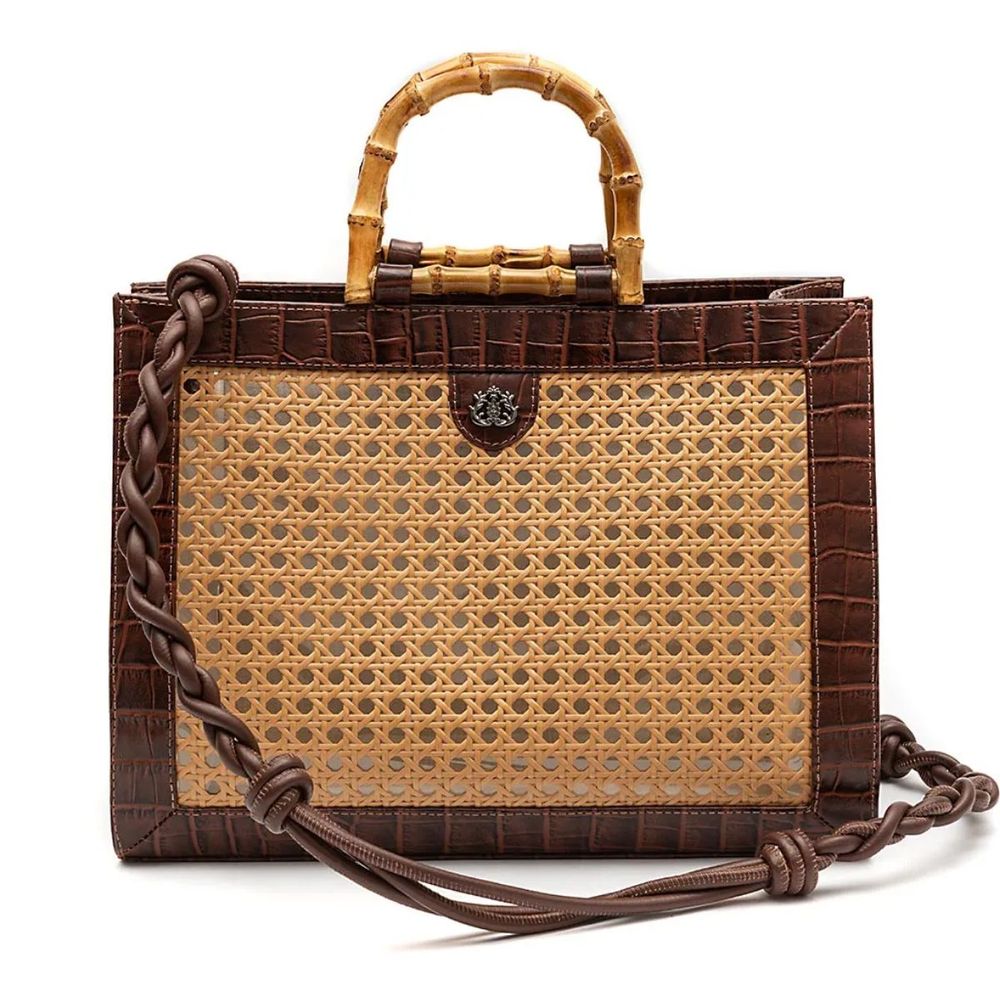 Essa Maxi Bolsa é essencial para quem procura uma peça clássica e chique! Seu amplo espaço interno permite que você acomode os itens indispensáveis do dia a dia. Feita em couro maxi croco, essa bolsa dispensa apresentações quando o assunto é beleza. Sua versatilidade se dá no uso das alças: uma alça curta fixa em bambu natural e uma alça longa em couro entrelaçado removível. A palha indiana dá um toque de sofisticação no acabamento. E conferindo segurança, ela possui fechamento em ímã e um bolso central em zíper, possuindo 3 compartimentos para acomodar seus pertences.