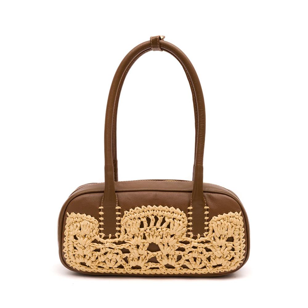 A Bolsa Elis Eastwest Crochê destaca a combinação entre o artesanal e o urbano-chic. Confeccionada em couro liso com aplicação frontal de crochê e pontos em ráfia, traz sofisticação natural em um design contemporâneo.