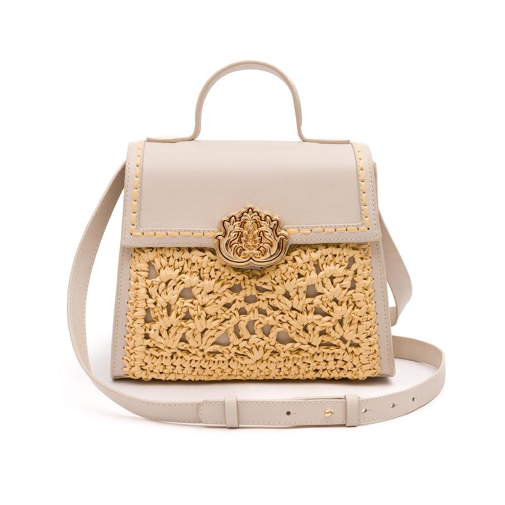 BOLSA ELIS TOP HANDLE CROCHÊ SOFT CHANTILLY RAFIA CREME - SOFT CHANTILLY/RAFIA CREME