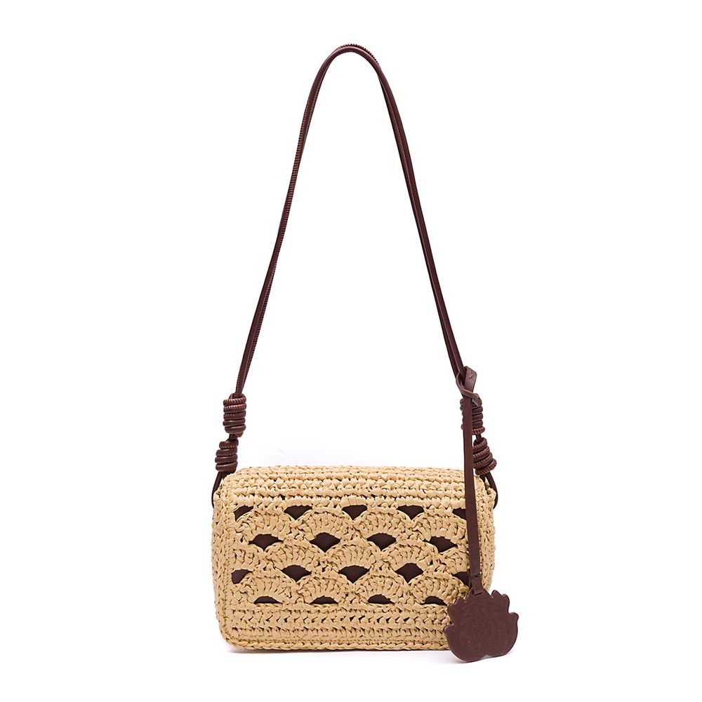 O forro em vinil transparente traz leveza e funcionalidade, e a alça longa em rolotê ajustável permite múltiplas formas de uso. O fechamento por ímã garante praticidade no dia a dia. Ideal para compor produções com toque natural chic, do passeio ao ar livre ao look de resort.
