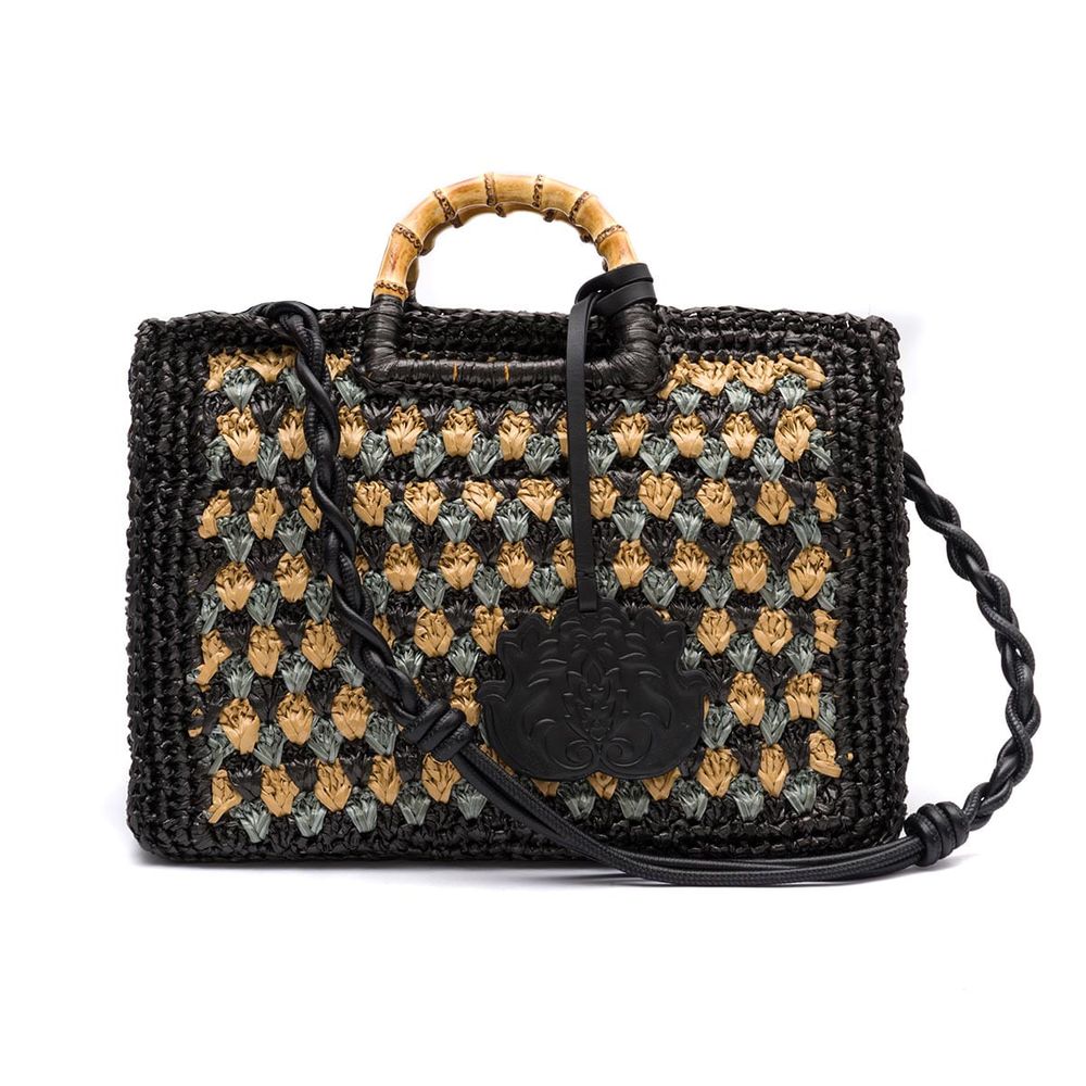 Inspirada na elegância natural dos destinos à beira-mar, a bolsa Maxi Tote Crochê tricolor combina o artesanato refinado ao design contemporâneo. Feita inteiramente em crochê de ráfia, ela traz um visual leve e sofisticado, com janelas em padrão multicolor nas tonalidades preto, jade e natural, que criam contraste e profundidade com charme autoral.