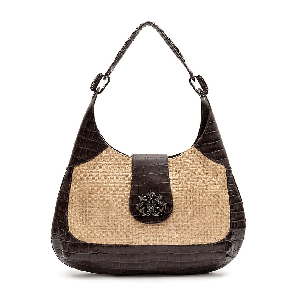 O fechamento em lingueta de couro com aplicação do logo ISLA em metal adiciona personalidade e assinatura de marca, enquanto a alça única de ombro, fixada por mosquetões com detalhe de enfiados, reforça o trabalho manual exclusivo presente em cada criação.