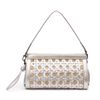 O fechamento por botão ímã garante praticidade, enquanto o bolso interno com zíper oferece segurança adicional. A alça wristlet e a alça removível ampliam as possibilidades de uso, permitindo transitar entre produções diurnas e noturnas com elegância descomplicada.