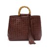 Nas mãos, os detalhes crescem: a alça de bambu natural traz um charme orgânico, enquanto a alça de ombro em rolete dá conforto e facilidade. O tassel pendurado traz um pequeno aceno de elegância e por dentro, o mosquetão permite dobrar o fole e ajustar o volume com praticidade, como quem adapta a bolsa à vida e necessidades do dia a dia.