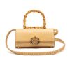 A alça de mão em bambu natural adiciona charme artesanal à peça, enquanto a alça longa com trança em couro oferece diferentes formas de uso, no ombro ou na transversal. O fechamento com a Flor Isla giralock em metal bicolor traz um toque moderno ao visual minimalista.