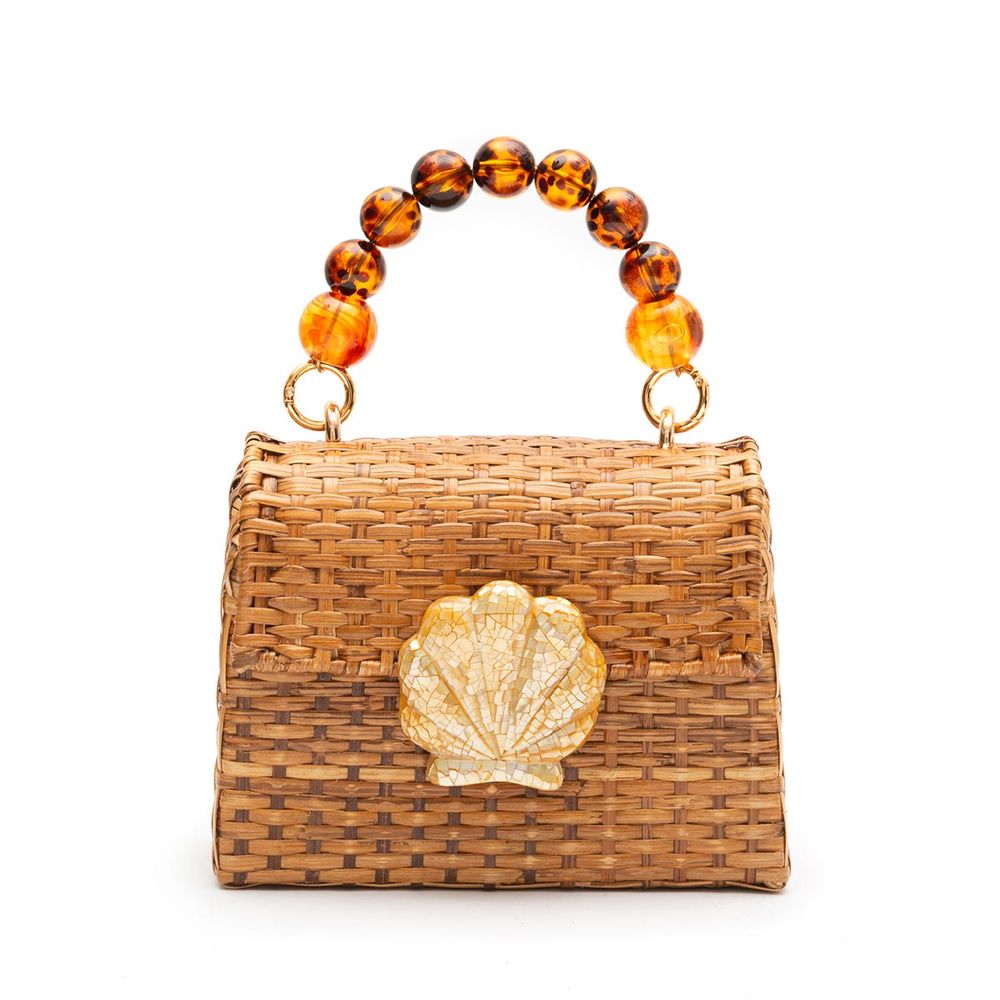BOLSA TOPHANDLE EM RATTAN COM FECHO EM FORMATO DE CONCHA EM MADREPÉROLA. POSSUI ALÇA DE RESINA TARTARUGA, E ALÇA LONGA EM CORRENTE DUPLA. CONTA COM MOSQUETÕES PARA CORRENTE E FECHO BOIA PARA UNIR A ALÇA DE CORRENTE.