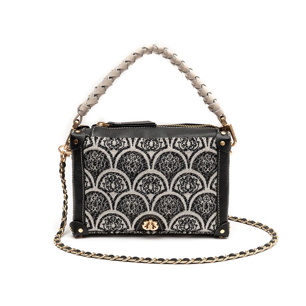 Inspirada no design clássico com uma nova abordagem, essa bolsa estilo tiracolo apresenta o shape trunk, trazendo sofisticação e funcionalidade para o dia a dia. Confeccionada em tecido jacquard com o monograma Isla e acabamentos em couro, conta com detalhes em cantoneiras com rebites e o enfeite de flor Isla, conferindo um toque único. Versátil, possui três formas de uso: com as duas alças, apenas a alça longa, ou a alça de mão removível em tressê de couro off-white. Compacta, é perfeita para guardar pequenos objetos essenciais e celular.