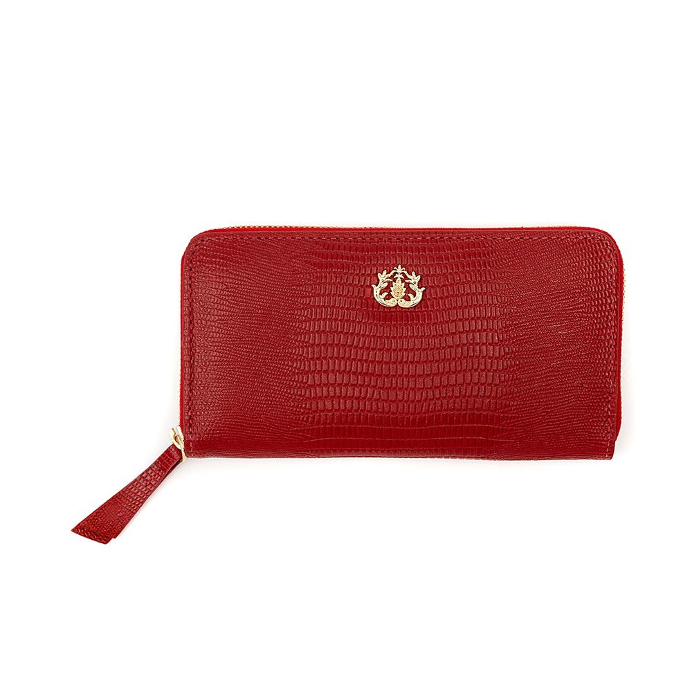 Carteira Grande De Zíper Em Couro Lizard Vermelho