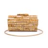 BOLSA CLUTCH CILINDRO EM BAMBU E MADREPÉROLA. MODELO POSSUI ALÇA CROSSBODY RETRÁTIL E FECHAMENTO POR ÍMÃ.