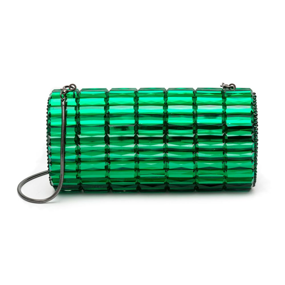 Um clássico perfeito para compor as produções de festas. A bolsa clutch de shape alongado é revestida por maxi cristais iridescentes. Ela possui uma delicada lateral com cristais cravejados, dando mais brilho e glamour a peça. Valorizando a segurança da bolsa, ela possui fecho magnético embutido e alça longa no modelo snake. É um investimento certo e atemporal para seu closet.