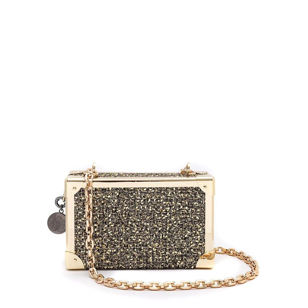 CLUTCH TRUNK METALIZADO TWEED GLAM OURO