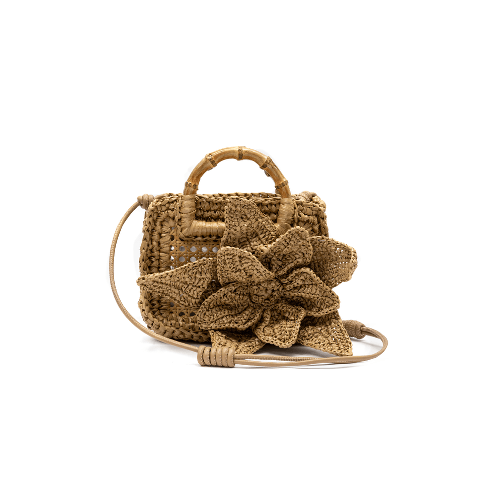 A Mini Bolsa FiorI em Crochê celebra o trabalho artesanal com flores delicadamente feitas à mão. Tecida em ráfia, o mix de materiais selecionados realça a exclusividade de cada peça, trazendo o autêntico do handmade. Com uma alça curta de bambu natural, perfeita para ser usada como bolsa de mão, e uma alça longa em couro natural, ideal para uso a tiracolo, a peça garante versatilidade. Compacta e prática, suas dimensões são ideais para acompanhar tanto o dia quanto a noite. Internamente, o acabamento cuidadoso inclui uma necessaire fixa, proporcionando segurança para seus itens.