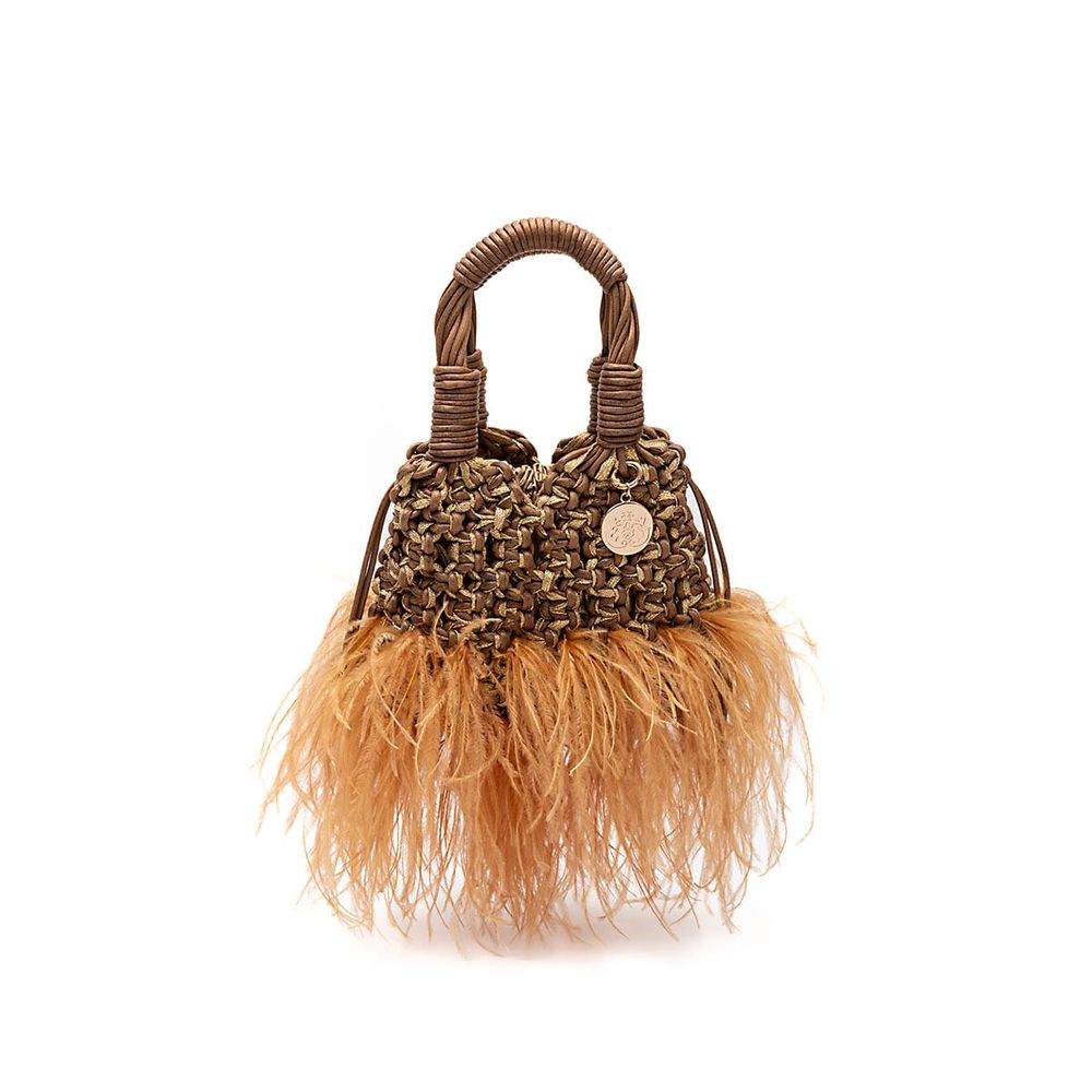 A Mini Tote Glam Plumas é a fusão perfeita entre o artesanal e o inesperado. Feita à mão em crochê com cordão encerado e cadarço de lurex, seu corpo traz um brilho sutil e sofisticado, em contraste com o toque exuberante das plumas aplicadas na base.