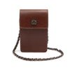 Possui alça longa em metal, com tiras de couro natural entrelaçadas. Pode ser usado a tiracolo ou na posição transversal, proporcionando versatilidade incomparável. Seu espaço interno acomoda celulares de todos os tamanhos.