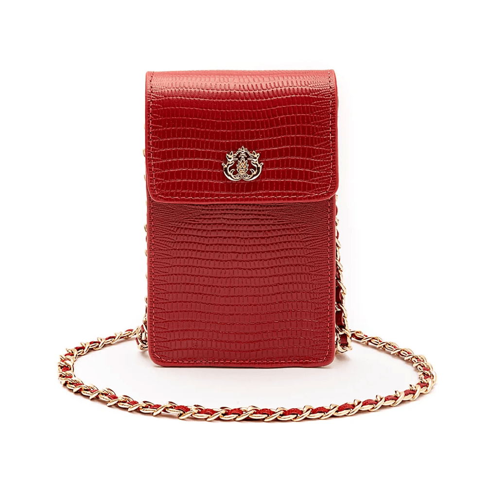 Phone Pouch Com Tampa Em Couro Lizard Vermelho