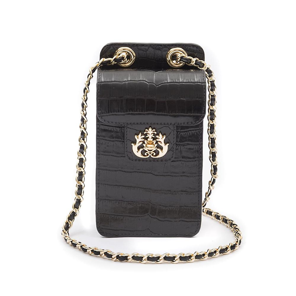O Pouch Anne combina estilo, praticidade e sofisticação em um formato compacto e versátil. Confeccionado em couro New Croco, apresenta tampa com fechamento por torniquete, alça longa de corrente de metal entremeada com couro e porta-cartões na parte traseira para organização dos essenciais.